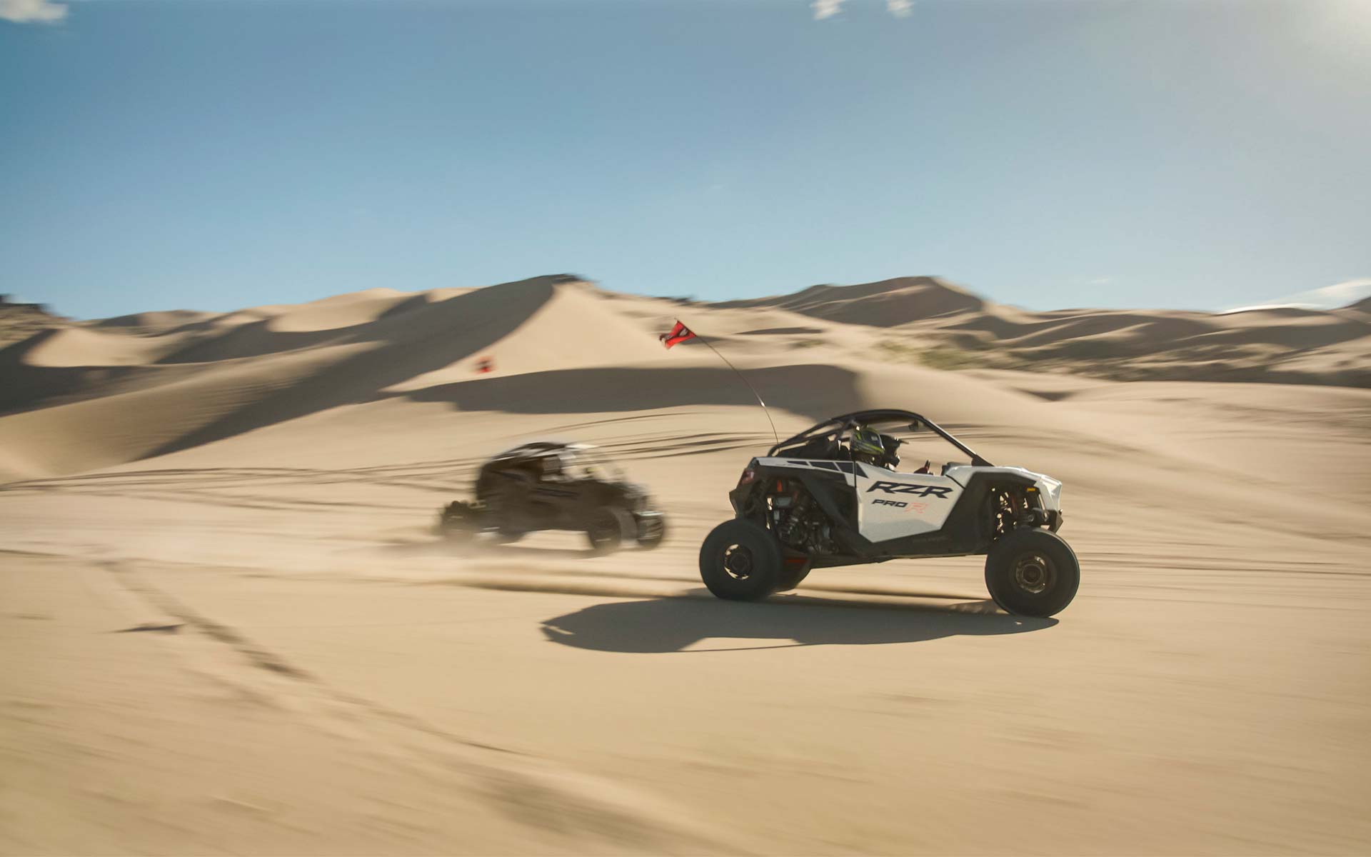 Supera a todos con una bestia todo terreno diseñada para ser el mejor. RZR Pro R entrega un desempeño asombroso para desafiar desiertos, conquistar dunas y batir récords todo terreno. Nunca vuelvas a quedar segundo. Con RZR Pro R, siempre ganas